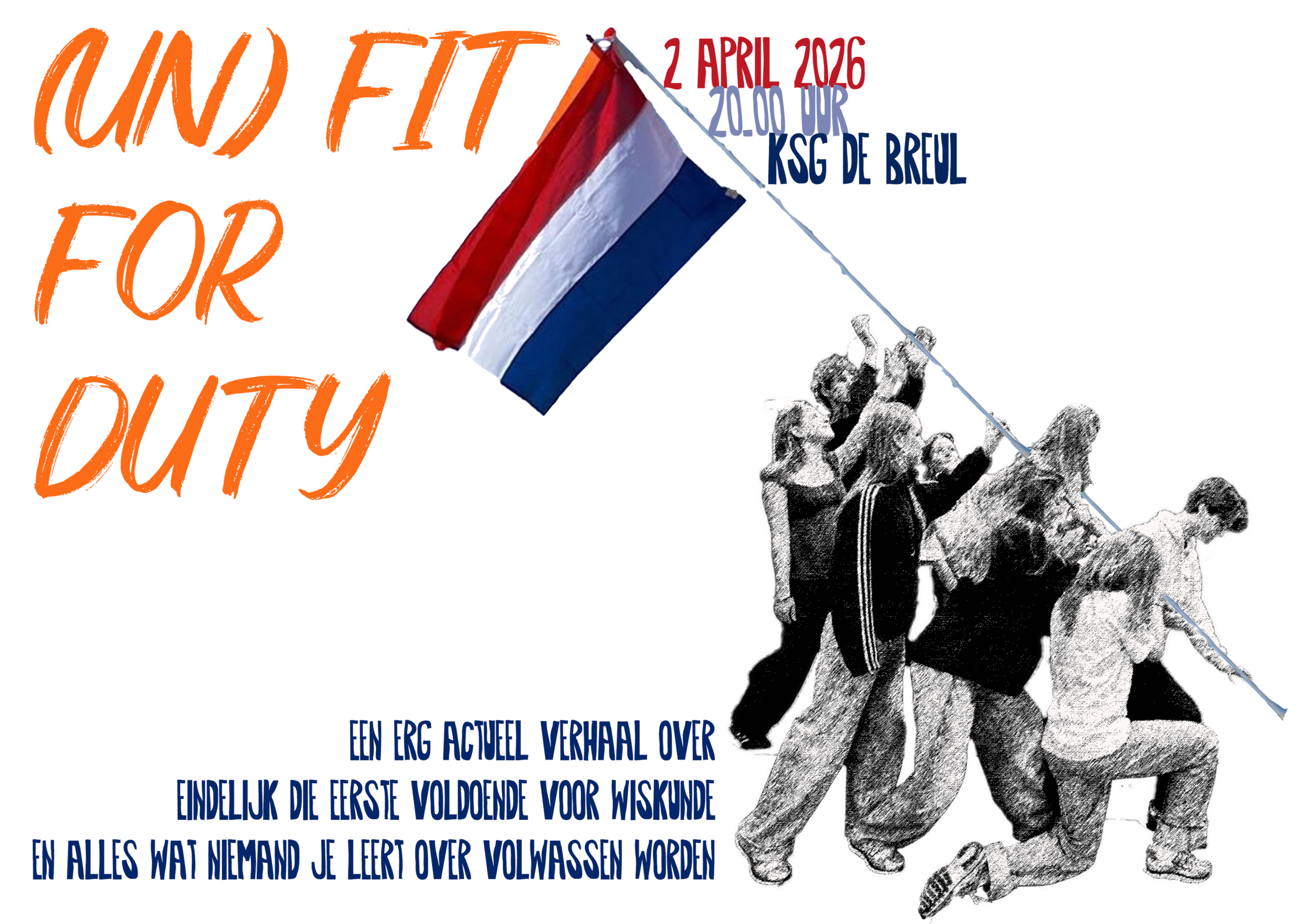 Om 19.45 uur openen de deuren van Drama, waar leerlingen vwo 6, met hulp van vwo 4 en docenten, het toneelstuk (un)Fit for Duty opvoeren.