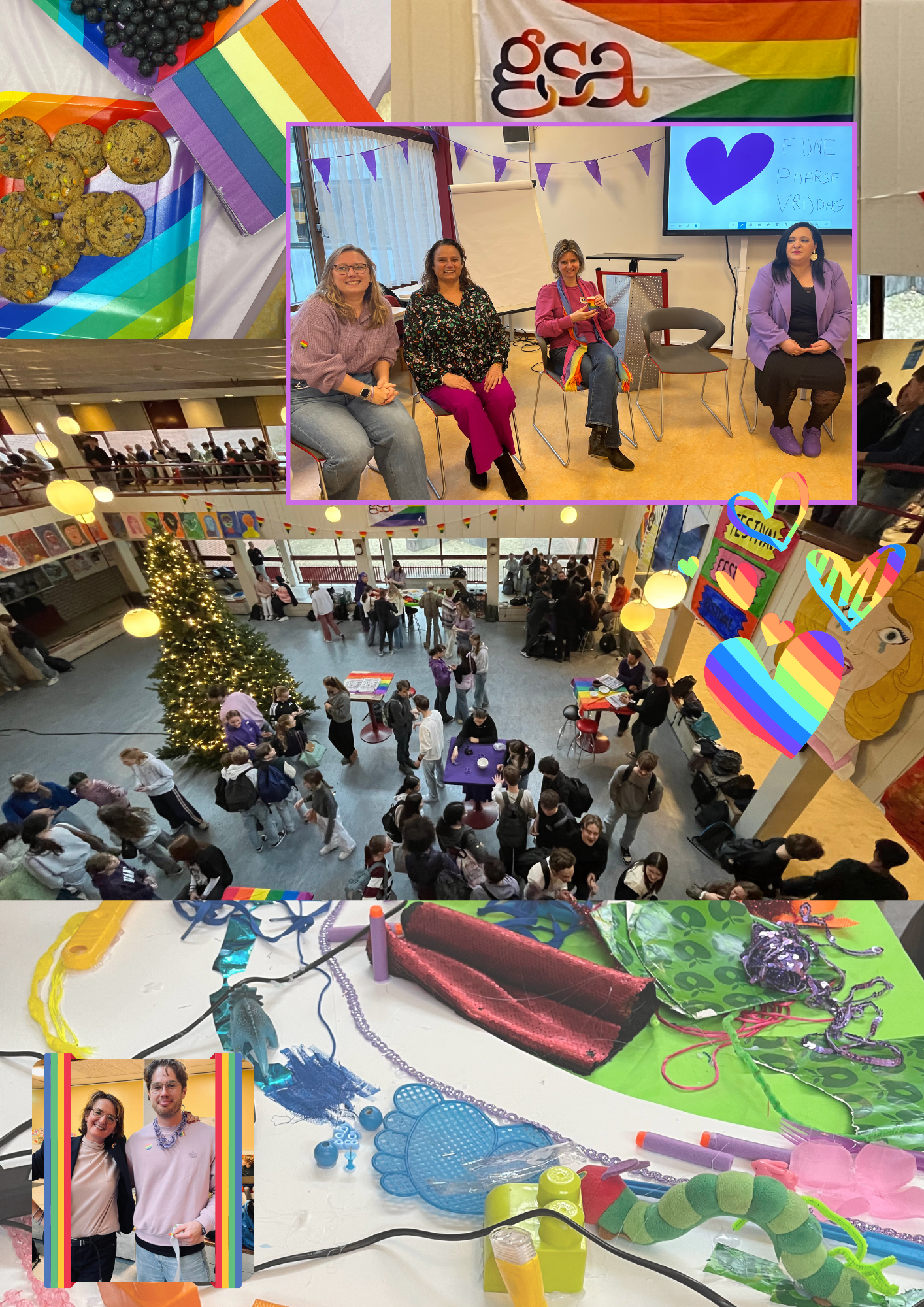 Paarse Vrijdag bestaat sinds 2010 en vindt ieder jaar plaats op de tweede vrijdag van december. Steeds meer scholen in Nederland doen mee om aandacht te geven aan seksuele en genderdiversiteit. Helaas is deze dag nog steeds hard nodig: uit onderzoek blijkt dat lhbtqia+ personen vaker te maken krijgen met pesten, geweld en zich minder veilig voelen. Daarom blijven wij ons inzetten voor bewustwording, acceptatie en een veilige plek op school én daarbuiten.